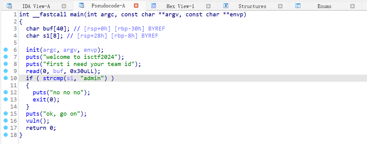 main 函数里有比对 admin,还发现 s1 在 buf 的范围内,可以在输入的时候控制 s1 为 admin。