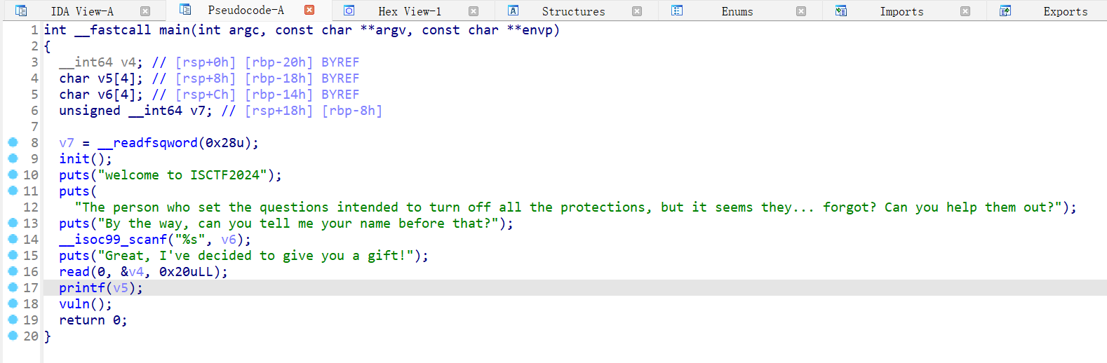 main 函数,存在一个格式化字符串漏洞