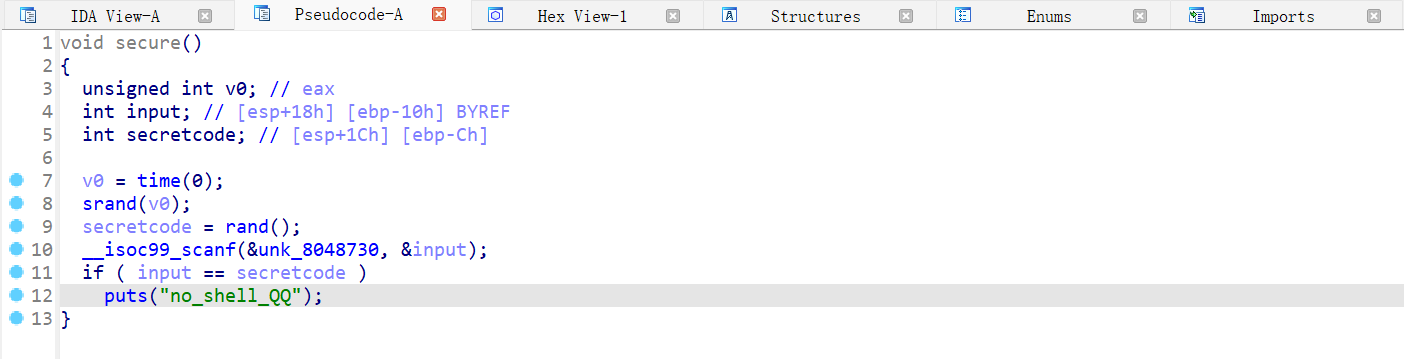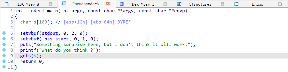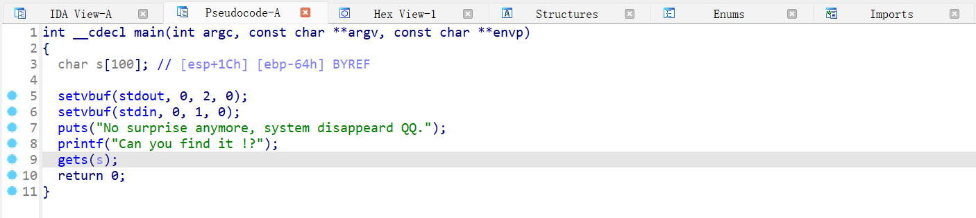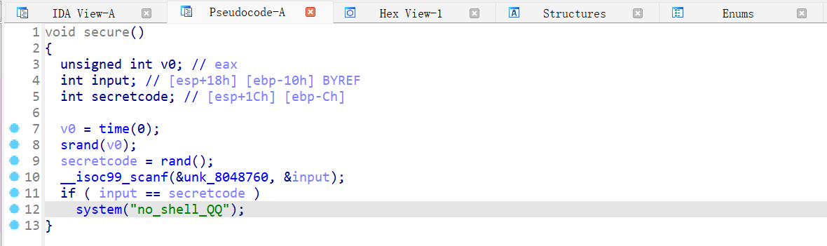 main 函数,gets 函数存在溢出。secure 函数中有 system 函数调用