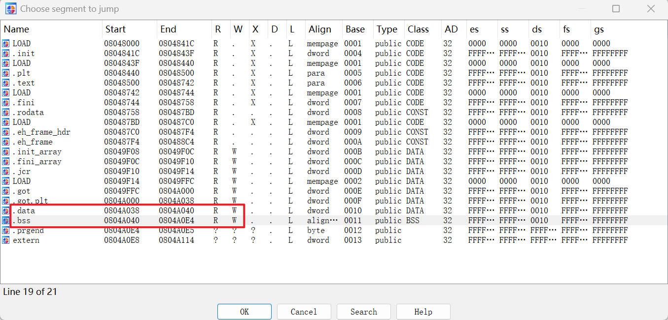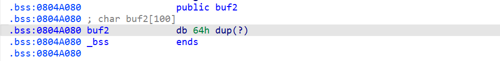 当我们寻找/bin/sh 字符串时,发现程序中并没有/bin/sh 字符串,因此我们只能手动读入/bin/sh 字符串。我们一般在具有读写权限的位置写入/bin/sh 字符串,所以我们可以选择 data 段和 bss 段,而 bss 段中有一个 buf2 的数组,我们可以将 /bin/sh 写入这个地址