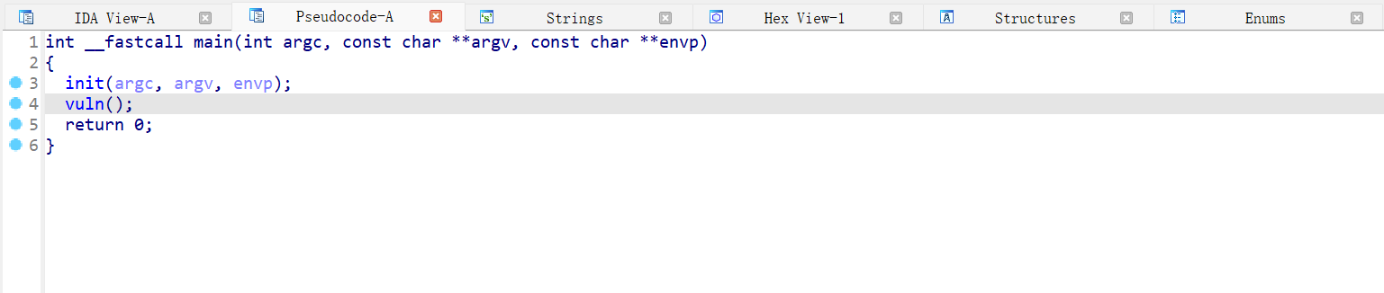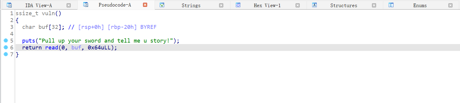 main 函数调用了 vuln 函数,vuln 函数存在溢出