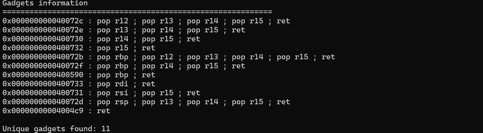 1 ROPgadget --binary pwn64 --only 'pop|ret'