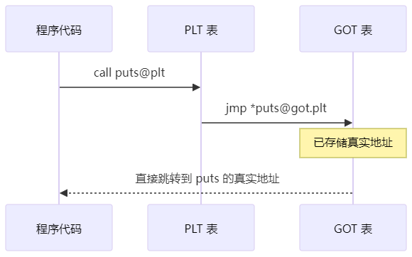 若 GOT 中地址已解析 → 直接跳转到真实函数地址。